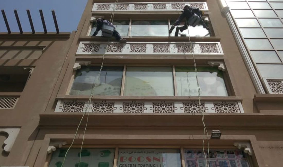 FACADE CLEANING Rope Access Building Cleaning Rahmania mall Sharjah | Façade & Glass cleaning by rope access Find out more