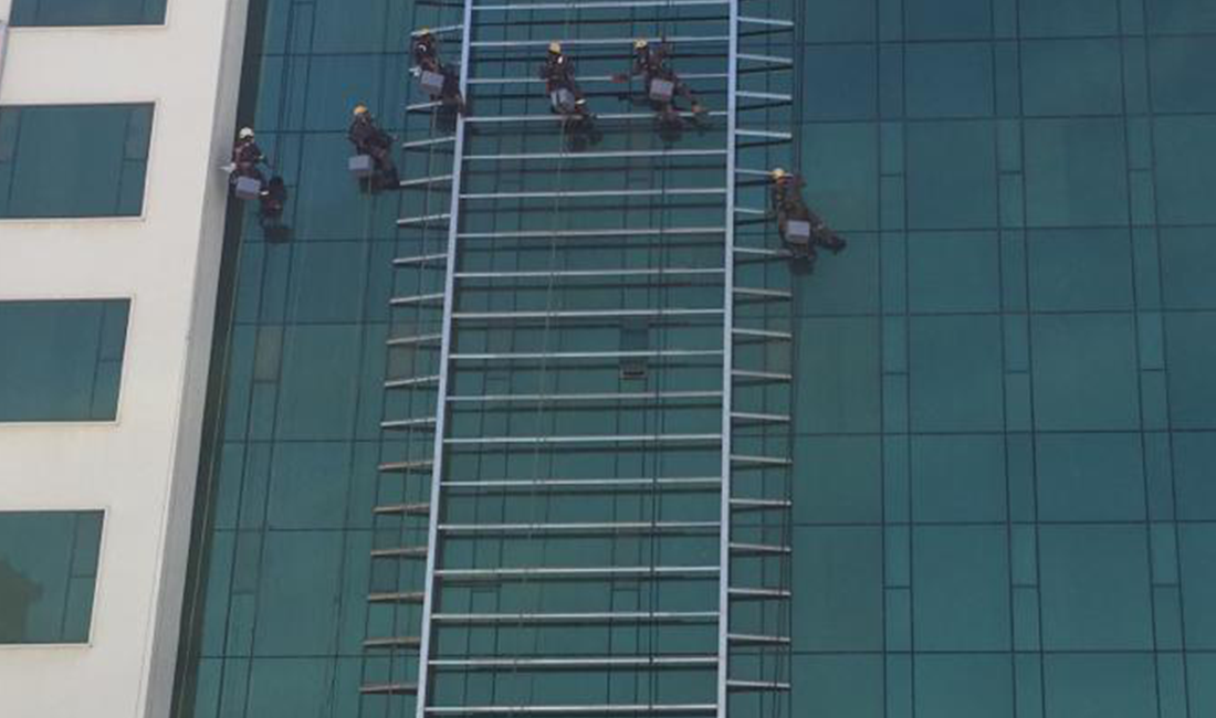 FACADE CLEANING Rope Access Building Cleaning Façade & Glass cleaning by rope access | Zero 6 mall Find out more