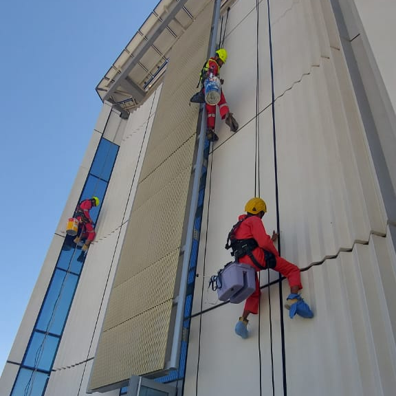 FACADE CLEANING Rope Access Building Cleaning Façade & Glass cleaning by rope access | Zero 6 mall Find out more